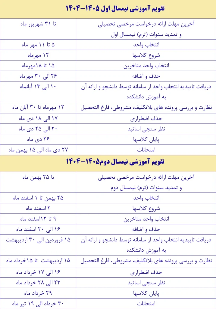 تقویم آموزشی ۱۴۰۴-۱۴۰۵